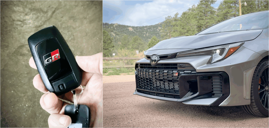 With just a glance at the simply designed key fob or a passing look at the car’s hatchback profile, it’s easy to “see” just a typical Corolla and overlook the enhanced hardware packed within this car’s bulging fenders. Indeed, the Toyota GR Corolla shares components with its lesser namesake, but make no mistake, those two additional letters bring a totally different car, along with its own production line.